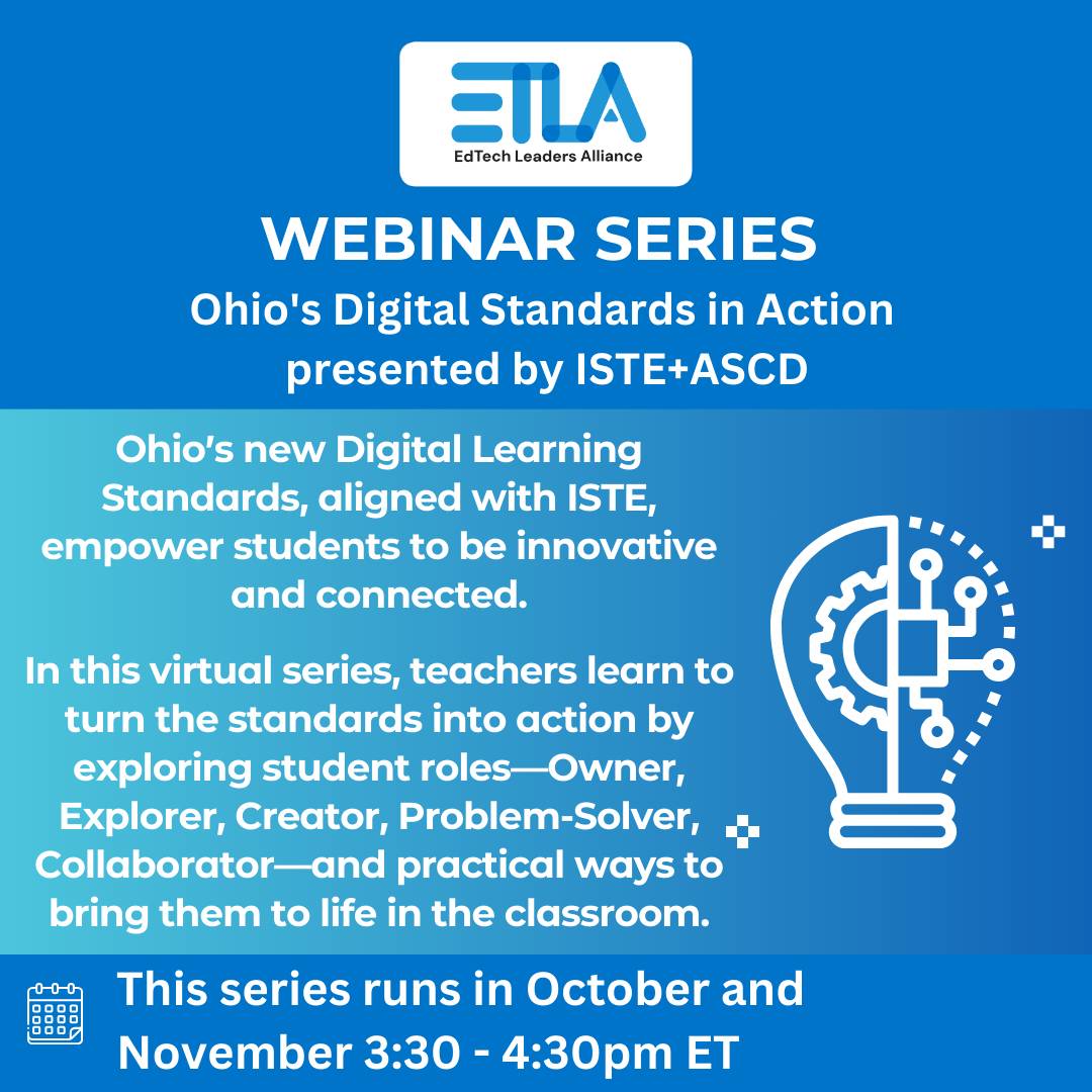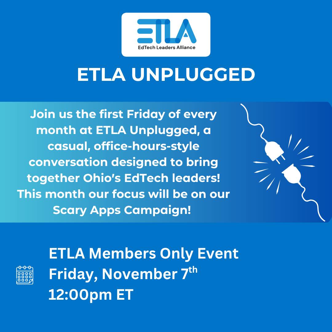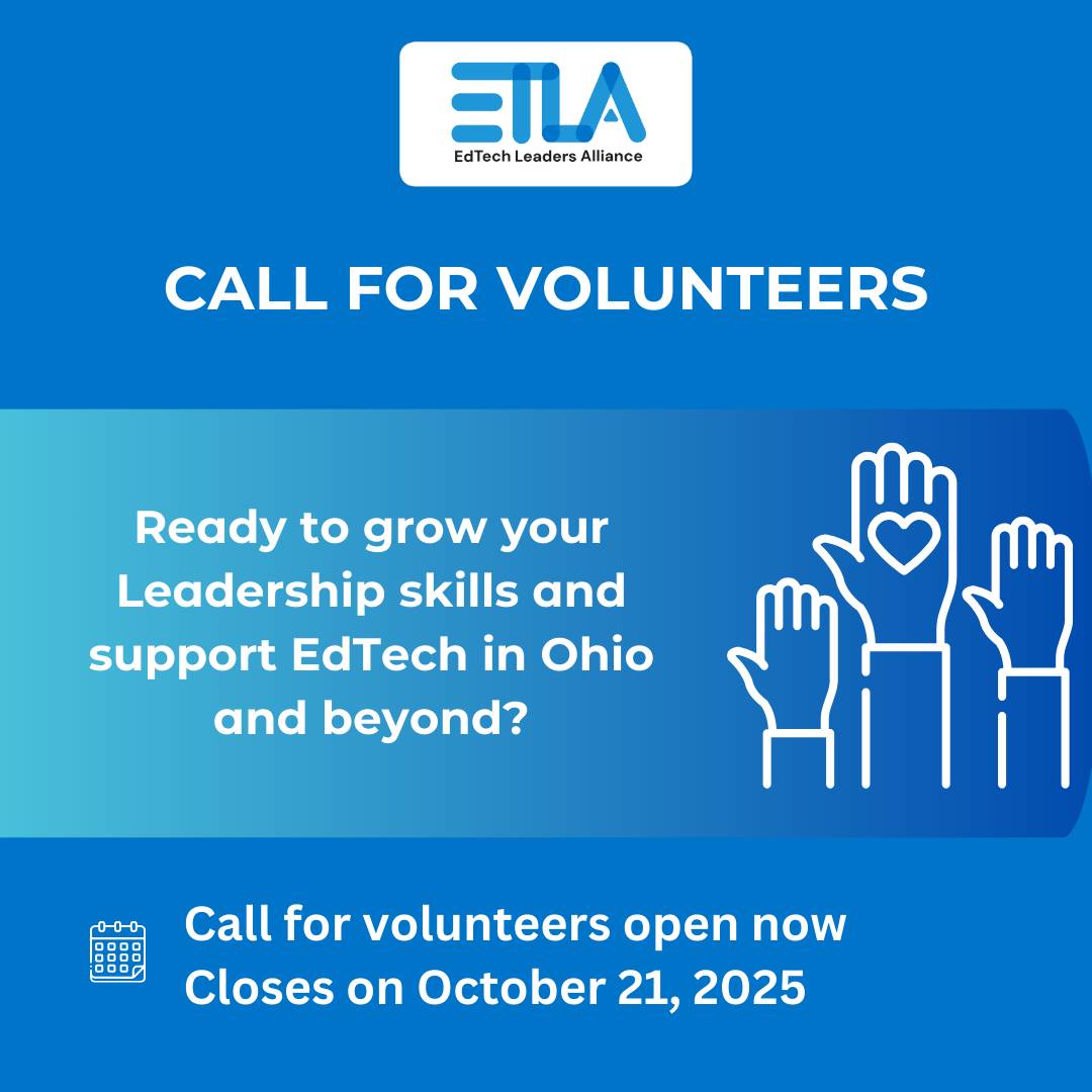 EdTech Leaders Alliance (ETLA) is an advocacy group focused on empowering educators with the knowledge and skills required to transform education through technology. ETLA strives to be the premier hub for EdTech professionals, fostering collaboration, innovation, and excellence in education. ETLA achieves this by serving as the home Ohio CoSN Chapter, ISTE Affiliate, SETDA Affiliate, and SDPC Alliance. Through this work we offer support services and leadership opportunities for EdTech leaders in Ohio and beyond.
